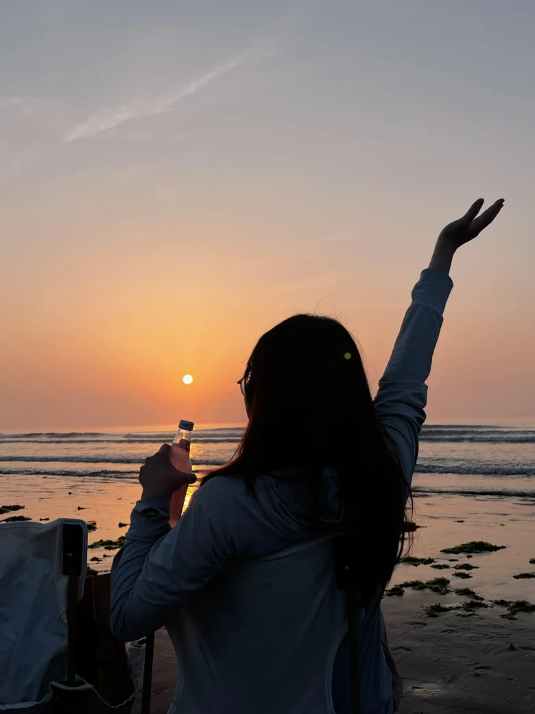 #定格我的精彩瞬间# 2025年在双月湾看过一次日出。夜里睡不着,开着小鹏M03沿着海岸线漫无目的地开。找了个能停车的野滩,坐在车里等。天从墨黑变成深蓝,海平线那儿先透出一点灰白。下车吹风,有点冷,但空气很清冽。看着天光一丝丝漫开,云层染上淡金,然后太阳整个跳出来,海面瞬间铺满碎光。回车的时候,整个驾驶舱都是暖的。拍了九张,从漆黑到明亮。一个人,一场日出,一次简单的抵达。
