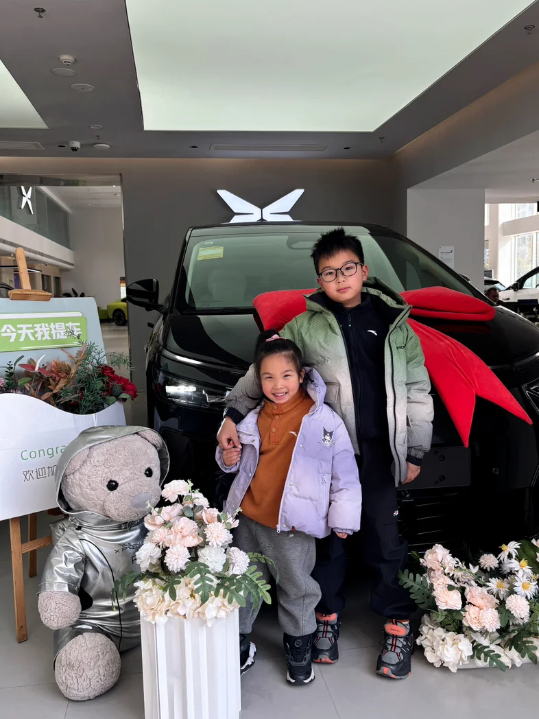 终于把心心念念的小鹏X9提回家啦!🥳提车当天就带着娃体验了一把,车内空间真的超大。中控屏导航清晰,内饰的质感也绝了,细节拉满。以后带娃出门再也不用挤挤挨挨了,娃在后排能玩能吃,我也能轻松不少😌小鹏的提车仪式感也超足,还有可爱的小熊玩偶盲盒,娃都抢着抱~以后就是我们家的专属亲子出行座驾咯~选它果然没选错,家庭出行的完美搭档!