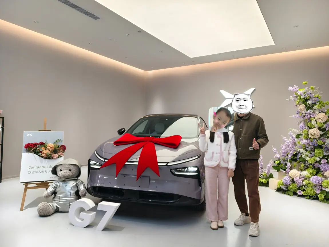 终于提车啦😁订车记:买G7前,也去看了比亚迪汉、极氪7x,还有埃安零跑等车型和品牌,因家里有油轿车,考虑预算兼顾家用,小鹏G72026款刚好准备上市,就关注,然后到店试驾,整体表现不错,例如智驾、ARHUD、太极AI底盘、超大空间等,老婆喜欢紫色外观,就立马下定啦。提车记:1月23日周五特意请假去广州黄埔提车,交付小哥哥很热情+细心+专业,美美的跟老婆拍照提车咯。提车后,立马参与智驾考试,研究车辆功能,购买车内各种配件,从此成为小鹏友😃。#小鹏汽车#、#小鹏G7首批车主火热提车#