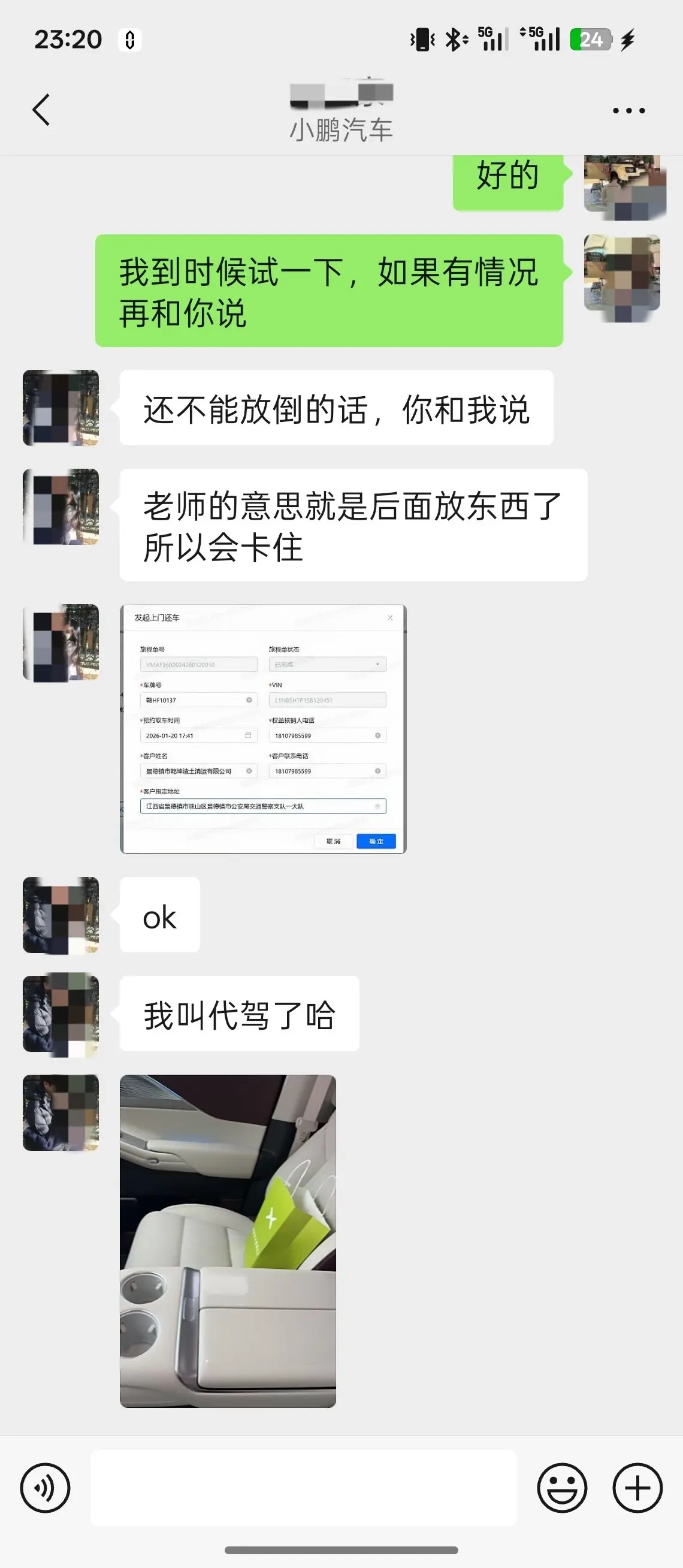 大赞!小鹏X9无接触式维修服务。小鹏X9第三排座椅间歇性无法折叠,一直忙着没时间去,突然有天想到当时购买车辆时有一年免费取送车权益,抱着试试的心态点进去,输入法自己取送车的需求选择了维修保养输入地址,下单成功!5分钟内就有客服联系我,和其说明情况让我稍等,紧接着本地4S店售后立即和我联系,说实话,官方客服做的不错但还是需要本地承接做得好,在这里要给这个小哥点个大大的赞,和他说什么问题都是耐心回复让我别担心,检查就行。半小时内代驾上门取走车,开到4S店检查处理又安排代驾送回来,全程4小时,售后小哥时刻和我拍视频回复处理进展!最后还送上小礼物放在副驾!说真的,维修这种事已经够拿到了,但这种能够全程无接触式处理我觉得很棒!!!
