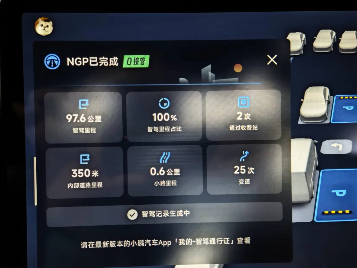 更新后NGP实力堪称顶级,近百公里行程全程零接管,抵达后还能精准自动泊入车位,体验真的绝了(σ≧︎▽︎≦︎)σ。