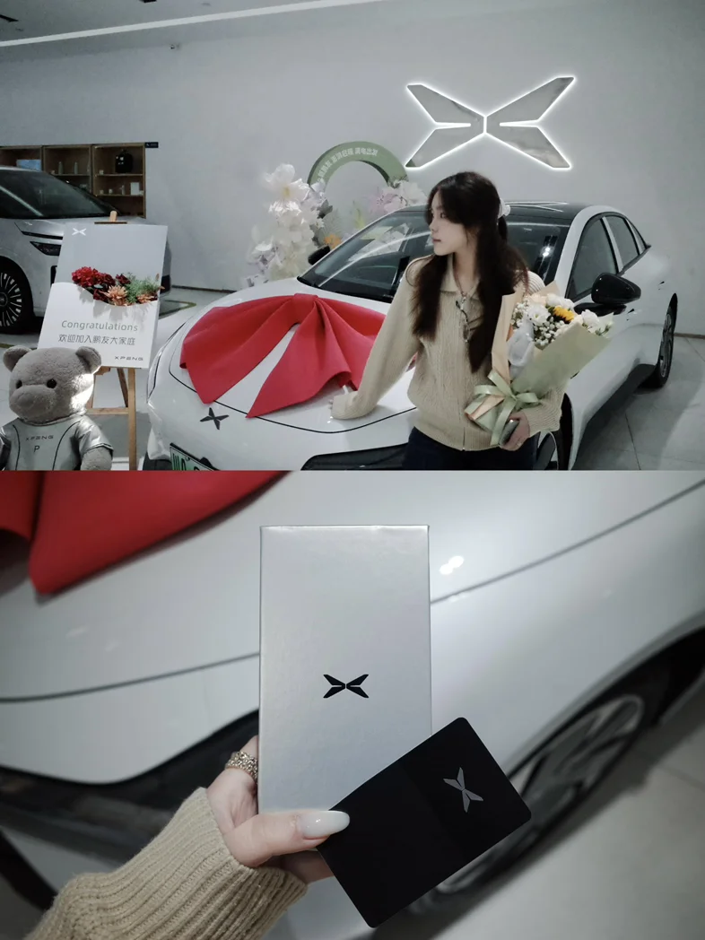 #我的提车作业# 庆祝自己提车快乐🎊起初只是对小鹏智驾非常感兴趣,结果销售带着试驾一圈后到我下订只花了2小时,以为会等两三周,没想到两三天车就到了,工作忙,交了399的上牌费后续几乎没怎么操心,周一下订 周三验车付尾款 周五上牌 周六丝滑提车,销售和交付服务态度很好,送了我真的超多(🥹) 不过我纠结了好久还是选了白外黑内,果然意料内非常大气且耐脏,推荐推荐!看到红薯上有人贴了悬浮顶,又是不一样的感觉! 买了一大堆车载用品,最最推荐大家买那观在野香薰包,佛手柑味道的,香的我舍不得下车