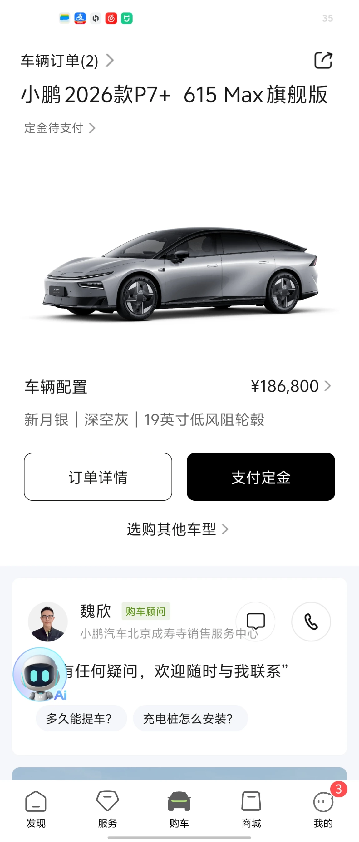 从大定到提车仅仅用了1周时间,第一眼被外观吸引进去发现他的二排空间也是很大,不输其他suv的舒适程度,车长5米一开始担心他的驾驶不便但是试驾过后就完全打消了这个顾虑,开起来特别方便,不会有什么笨重的感觉,期待后续的使用