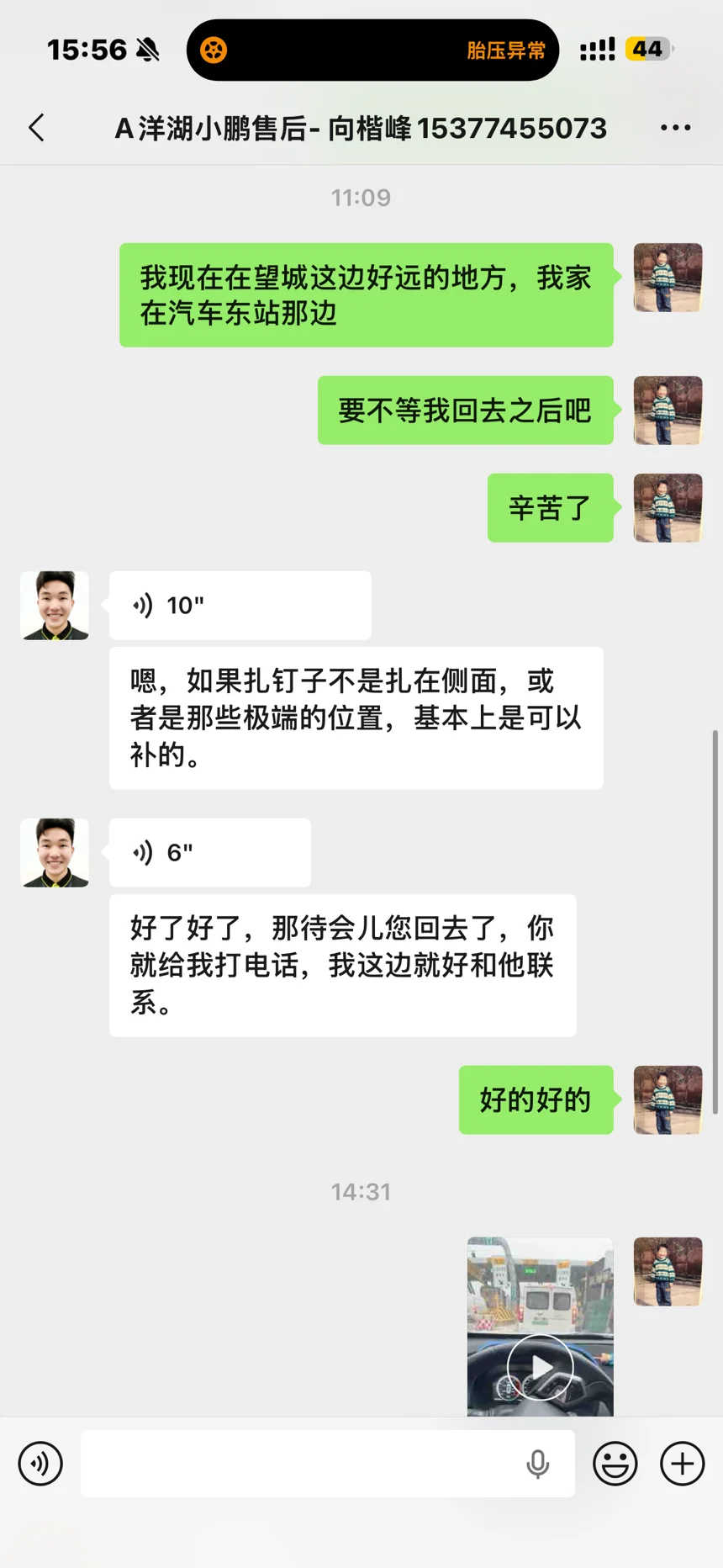 今天上班发现汽车扎了一个钉子,售后响应非常及时。实名表扬售后经历向楷峰和维修师周师傅。服务暖心,态度一级棒!!!