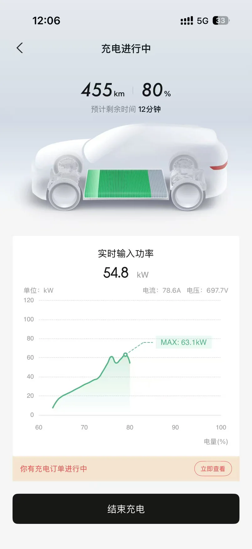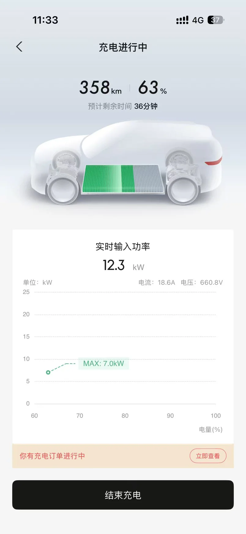 小鹏官方充电桩 180kw 得桩,插上去 7kw,半个小时最高 60kw