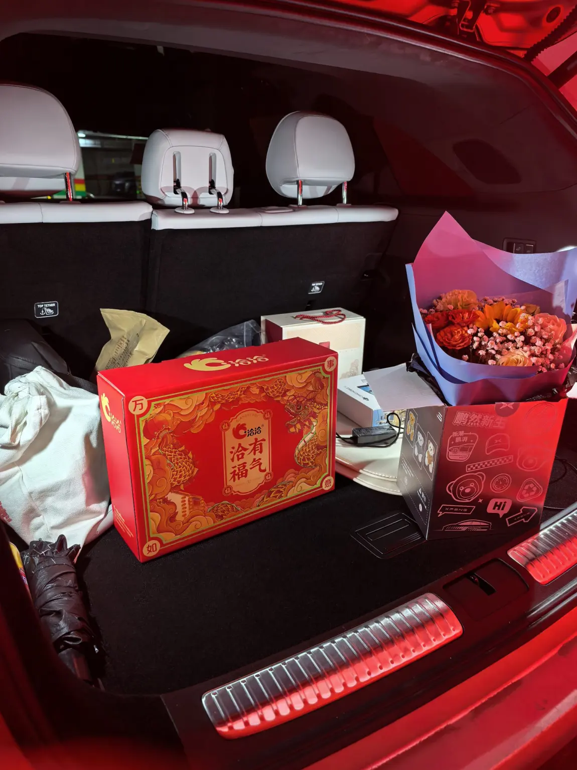 新春出行好搭子之小鹏G9春节走亲访友,小鹏G9就是最好的伙伴。它拥有1795升的后备厢可扩展空间,再多的年货和礼品都能装下 ,给家里长辈准备了过节红包,过年氛围感马上就上来了。今天开着小鹏G9去置办年货,那叫一个轻松。超市里采购的牛奶、礼包轻松放下,花市上买的鲜花都能轻松放进后备箱。它的大空间,就像一个移动的仓库,让你可以尽情采购,不用担心装不下。#新年首次出行# #定格我的精彩瞬间#