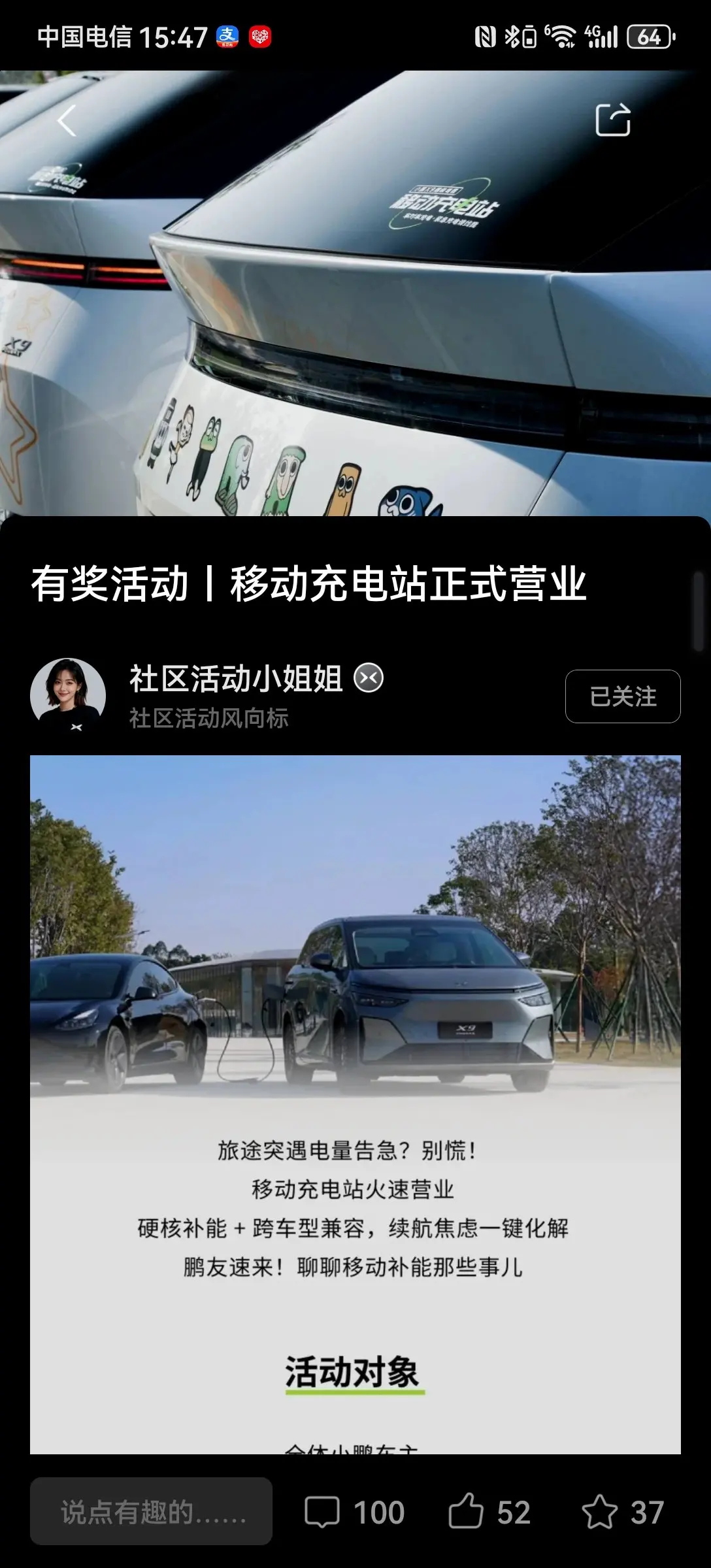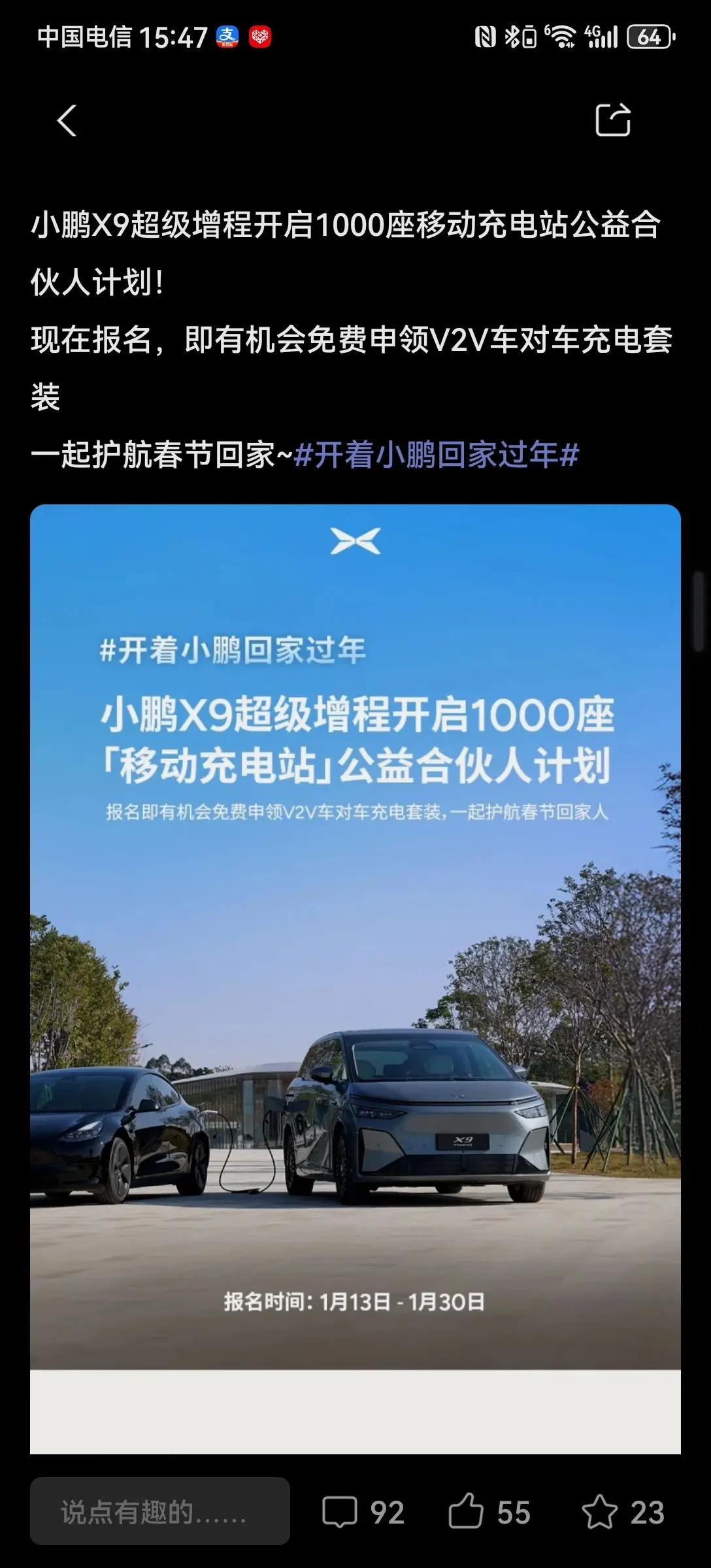 #一千座小鹏X9超级增程移动充电站# 不是鸡肋,但是这个活动太抠门了吧!总共才1000个人用户参加!而且报名还没有结束通道也没有关闭,资料填写好了不能报名了,不能报名你倒是关闭呀!天玑6.0首批尝鲜申请推送也没有申请到关闭啦!这次移动充电站没关闭但是名额满啦!看来在这这小鹏APP运气不咋滴呀!