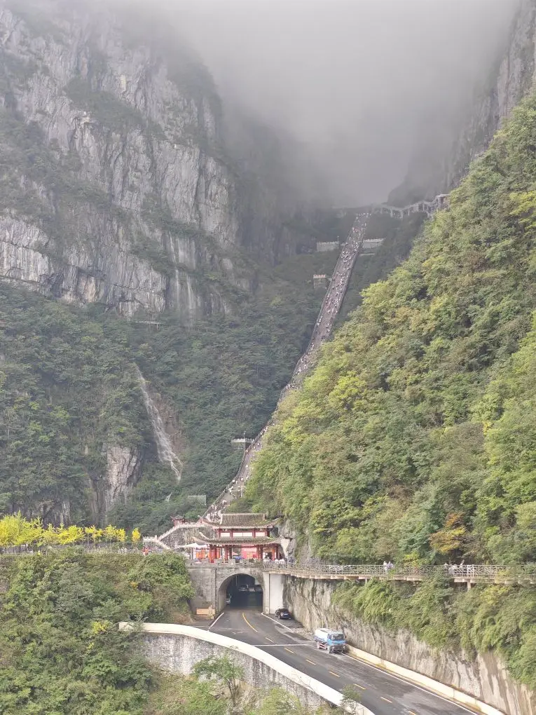 车与山的光影叙事 抵达天门山脚下时,阳光穿透薄雾洒在P7流线型车顶上,与玻璃栈道的冷峻线条形成奇妙反差。我们特意将车停在天门山索道站前的观景台,镜头里银色车身与层峦叠嶂的山峰相映成趣,仿佛科技与自然的和鸣。