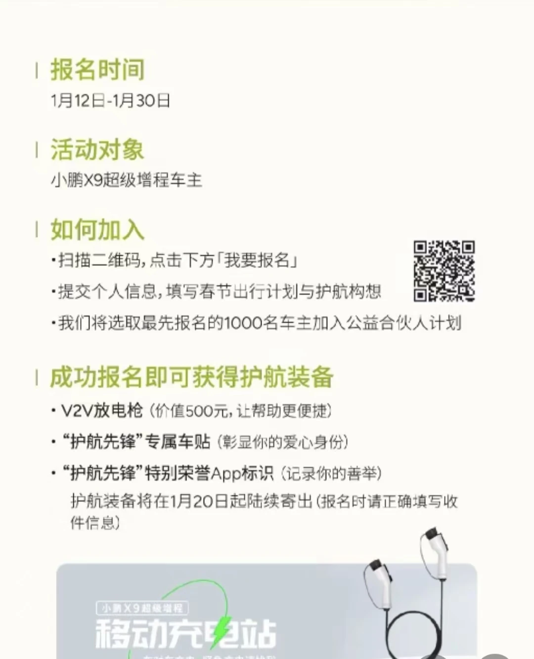 #一千座小鹏X9超级增程移动充电站# 小鹏移动充电站来喽,小鹏汽车召集小鹏X9超级增程车主,免费赠送V2V放电枪,这一行为充分彰显了小鹏汽车的格局。小鹏X9超级增程化身移动充电站,随时随地为别的车补能。这个简直太好了@社区活动小姐姐 我也要买小鹏X9