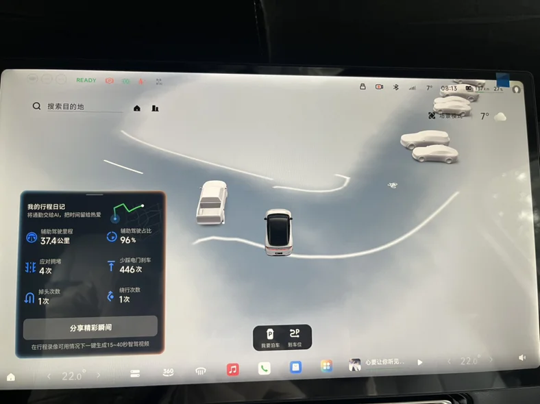 辅助驾驶里程37.4km 辅助驾驶占比96%
