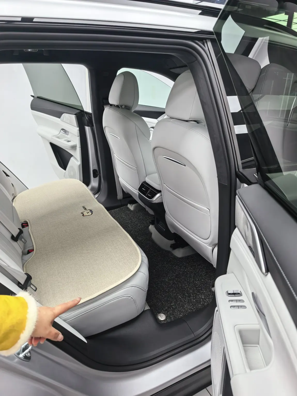 1.行驶质感:底盘结构前轮采用了双叉臂式独立悬挂,后轮采用多连杆独立悬挂,且配备了双腔空气悬挂,虽然不太懂,但是听名字应该比单腔空悬要高级一些,底盘调校邀请了保时捷团队参与,所以乘坐质感有德系豪华车的感觉,过普通细碎路段,悬挂滤震很彻底,稍微有点不平坦的路面带给车辆的反馈感在柔软中带有一点韧性;在过路障时车身颠簸较小,不会有过于追求舒适性车型的那种晃动感,尤其是以较高车速过90度急弯,车身稳定性依然很高一点不飘;此外销售介绍新款车型还配备了AI 底盘智能调节,每秒 1000 次路况扫描、200 次悬架调节,120 米前瞻感知,提前应对坑洼 / 减速带,说的很专业,不过实实在在能带来很强的舒适感。