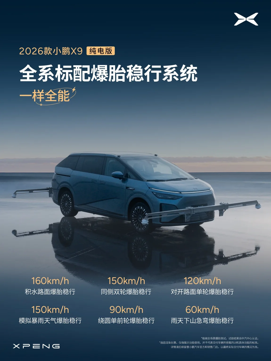 2026款小鹏X9纯电版来了!产品力全面对齐超级增程,实现九大能力全面升级:续航更长、能耗更低,新款X9纯电版将是全球续航最长的5C纯电大七座,全系标配800V+5C超充,CLTC高达750km。智能辅助驾驶全面焕芯升级,全系标配行业领先的图灵AI芯片,搭载小鹏第二代VLA。全球标配三排电动三折叠,采用RNC主动降噪,静谧性再升级,同级唯一带安全气囊零重力座椅,舒适性拉满,全系标配主动式后轮转向+爆胎稳行系统,超稳不失控。2026款小鹏X9纯电版从今日起正式开启预订!