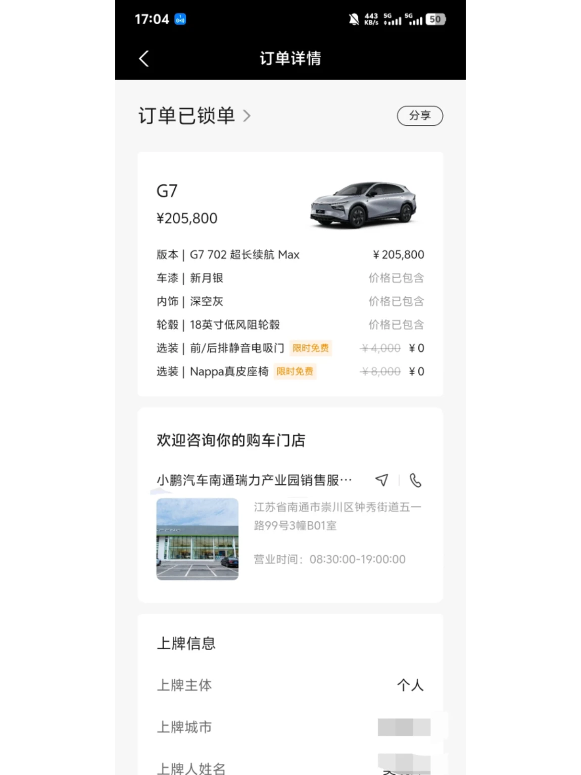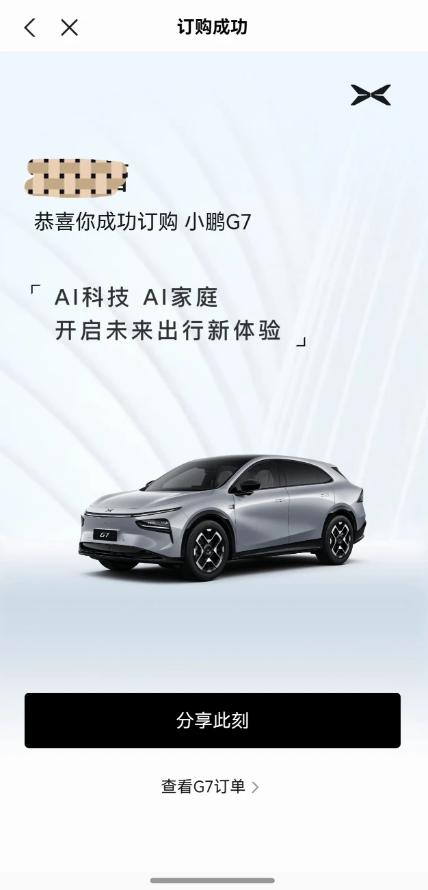 #晒小鹏G7大定# 在集中看车、试驾了四周,终于在一众新势力品牌中选中了小鹏G7。选择理由:1.大小合适。经过考虑,家庭用车还是SUV最为合适。且队友比较在意车内空间大小,小鹏得房率还是很高的,完全容得下他的大长腿,所以他较为满意。2.智驾聪明。试驾感觉与华为系的智驾没有太大差距,而且可以画线停车,对新手司机太友好了。而且G7会配3颗图灵芯片,算力据说可达2200(其余大多580),这一点也非常吸引人。