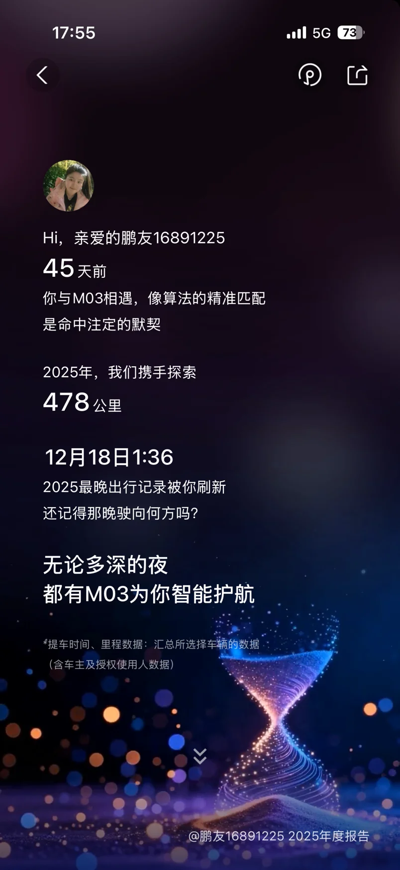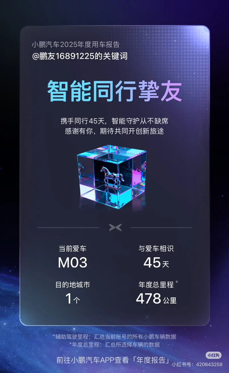 2025年是最开心的一年,这辆车是我工作以来自己攒钱买的车,提车回来已经有一段时间了,他不仅是在风雨交加的夜晚陪我走过的每一段路,还更是我努力向上生活的体现,小鹏M03的每次充电都是我想更幸福的路程前进,他的每次智驾都像如朋友般贴心的分担,他的精准匹配就像命中注定的默契,希望2026年我能够和他一起略更好看的人……