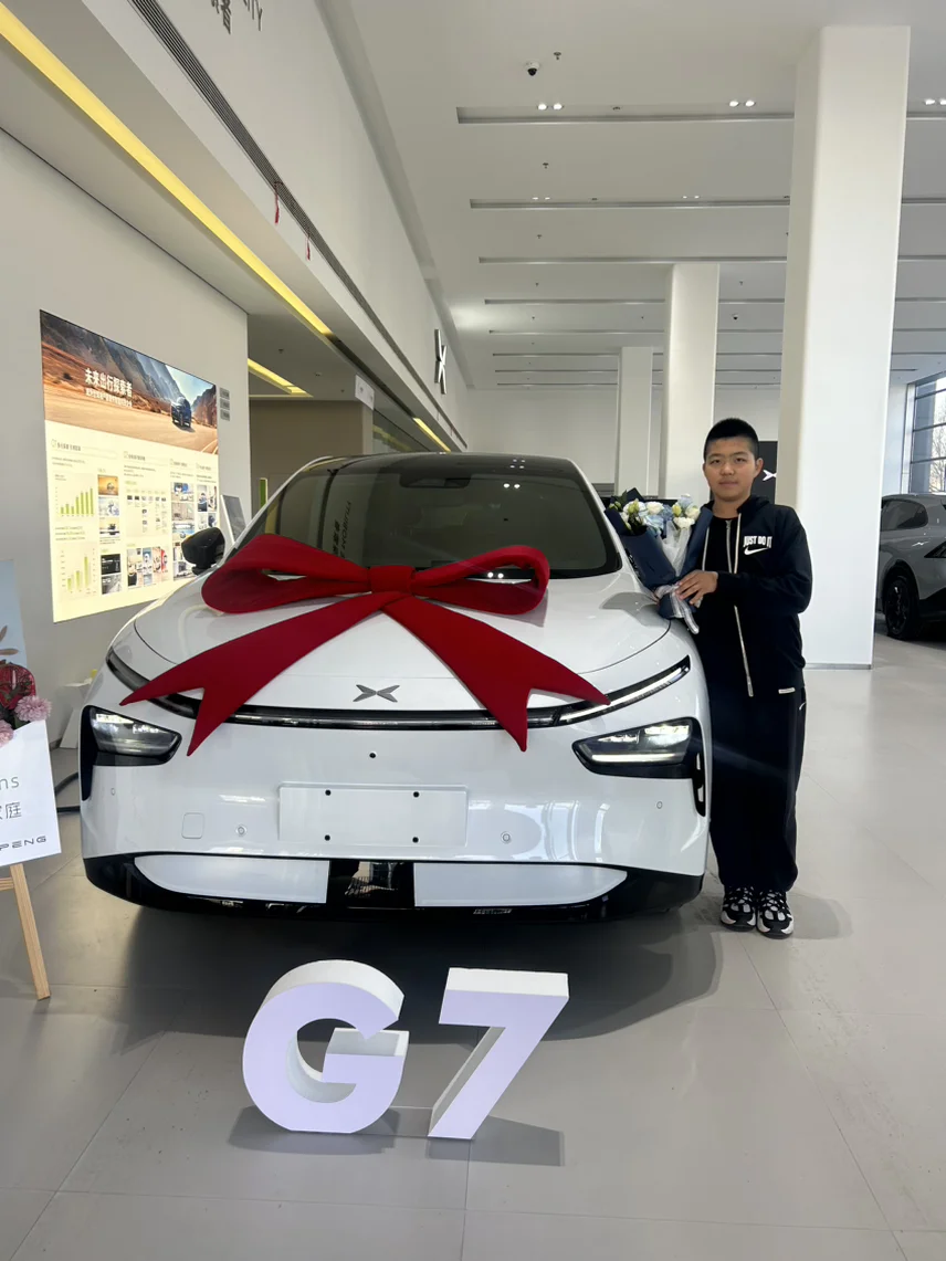 #我的提车作业# 关注小鹏已有数月,最终还是始于颜值,千呼万唤的选择了G7。非常适合家庭的一款经典车型。坐进去的质感,底盘的调校,后排的空间,经典的外观。全部都长在我的审美上。未来的路,我们并肩前行,小鹏加油!