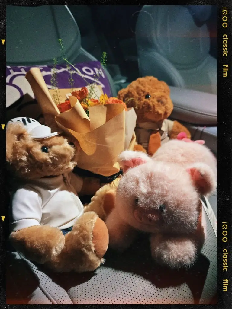 马上要到新年了,准备装修一下我的小鹏汽车的内饰。之前有一些小熊,然后有一个小猪,最后买了一束花放在车里,让整个车的氛围瞬间高级了起来。