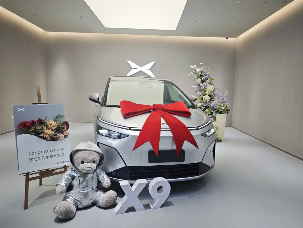 等了23天,终于接到了交付中心的电话。到店的时候我的X9已经静静停在专属交付区,超大的红色蝴蝶结搭配着旁边的花艺和小熊摆件,瞬间让我感觉这不仅仅是提车,更像是迎接一位新的家庭成员。销售小哥耐心带着我检查了车漆、内饰,讲解了车辆功能,帮我激活了X-ID账号,把手机和车机完成了绑定。