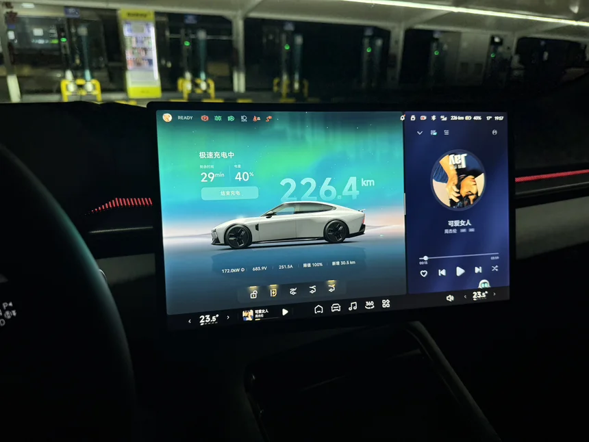 当初一眼沦陷的流线型车身,现在锁车后依然会忍不住回头多看两眼!低趴姿态+贯穿式尾灯,夜晚点亮超有辨识度,内饰的简约科技风也完全不腻,中控屏反应流畅,细节质感拉满,每次上车都心情愉悦~