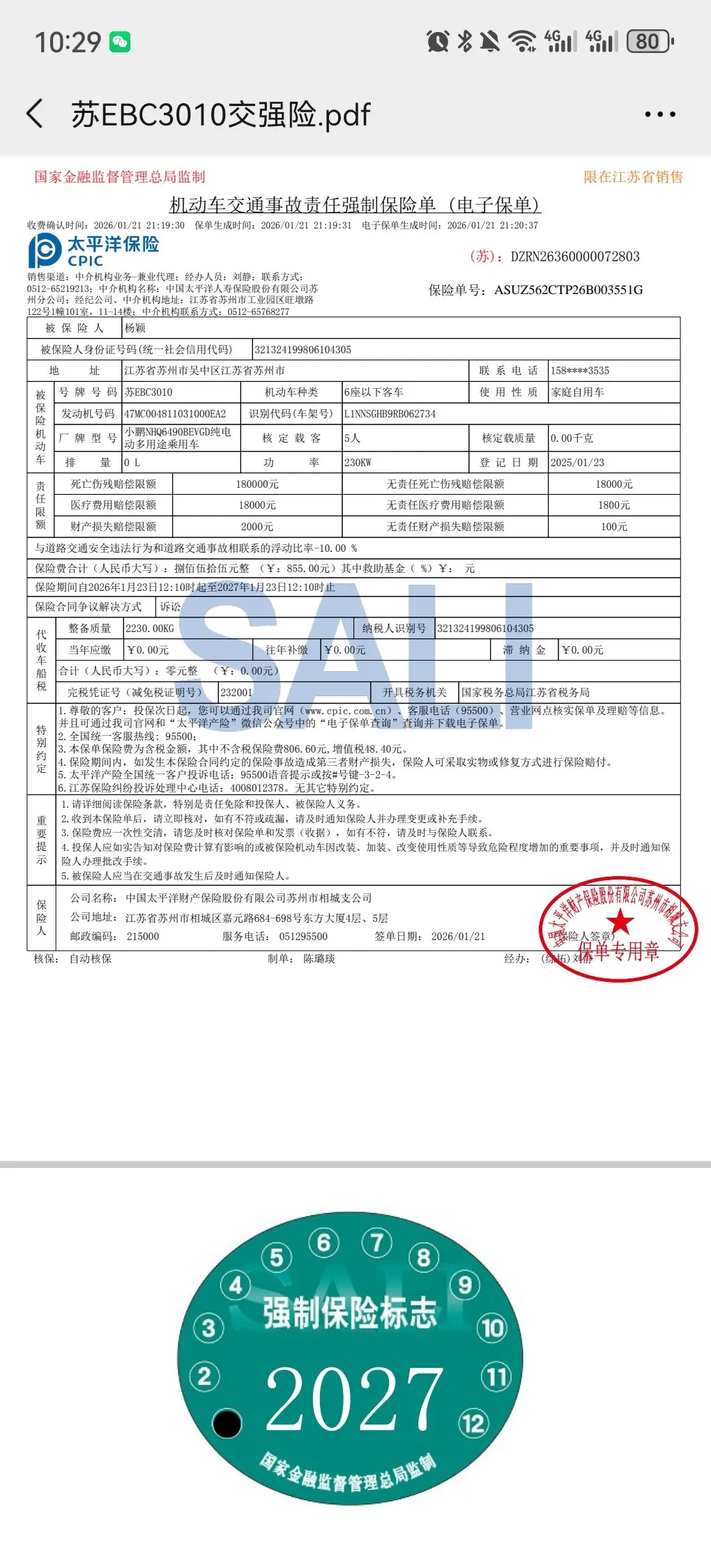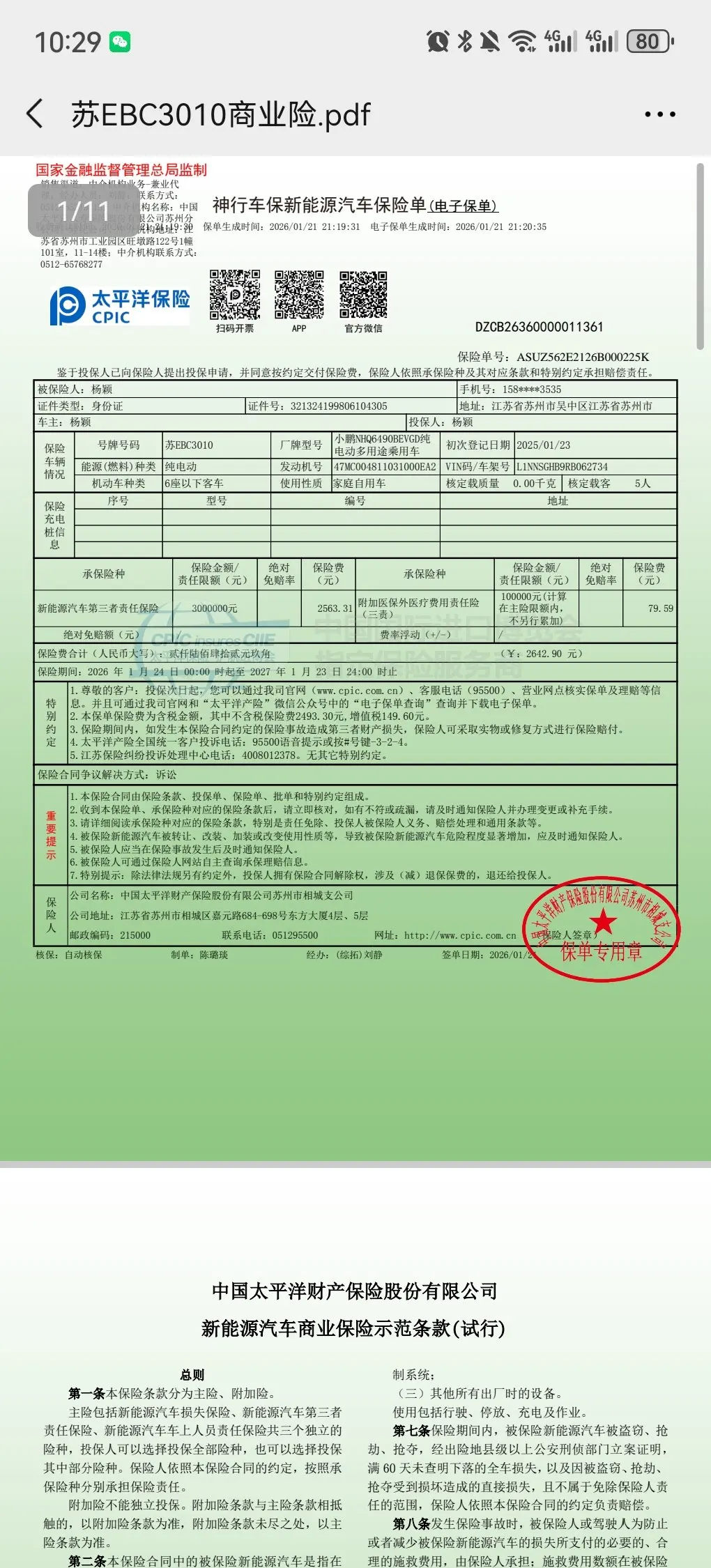 开小鹏汽车第2年续保了