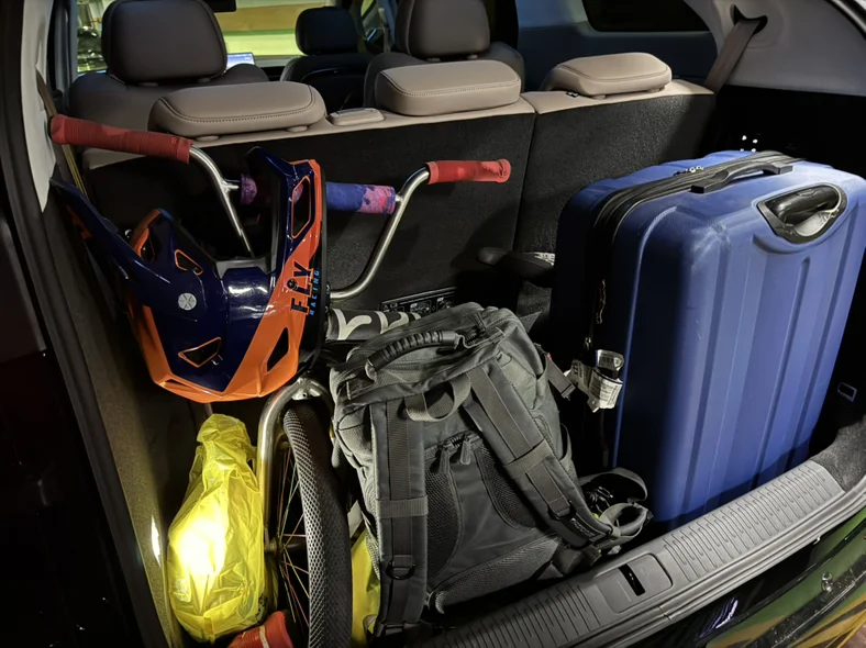 家里骑车娃开始了寒假集训…虽然我们就俩人,三排没放倒也把18寸bmx 护甲 28寸行李箱等装下来了。