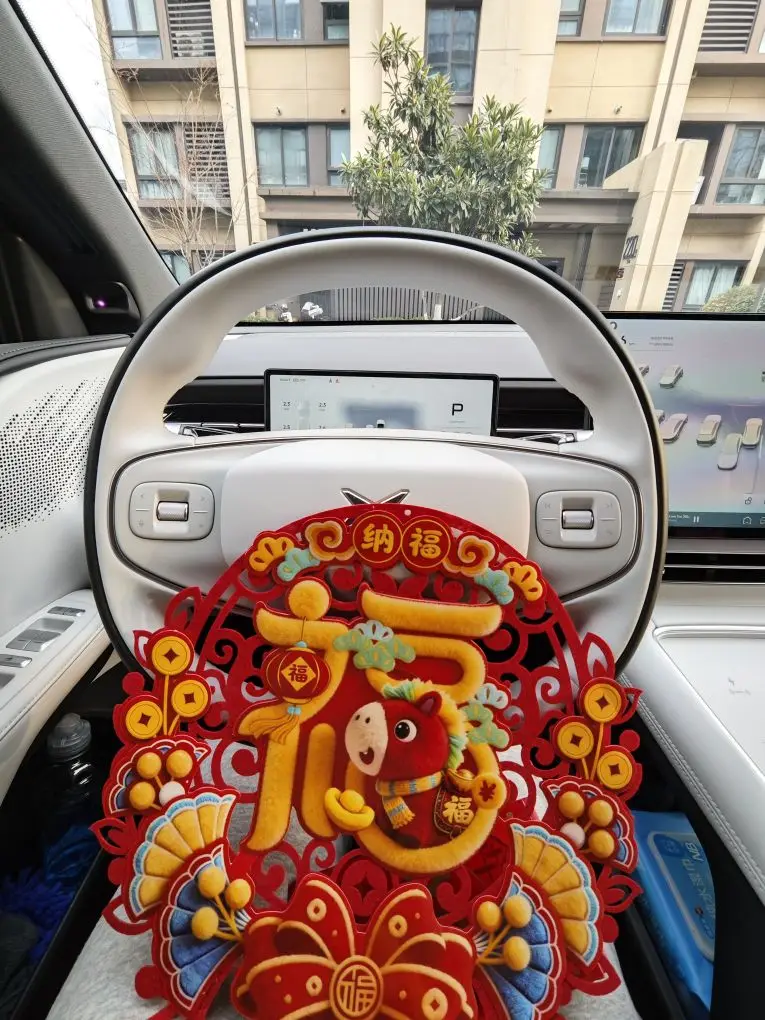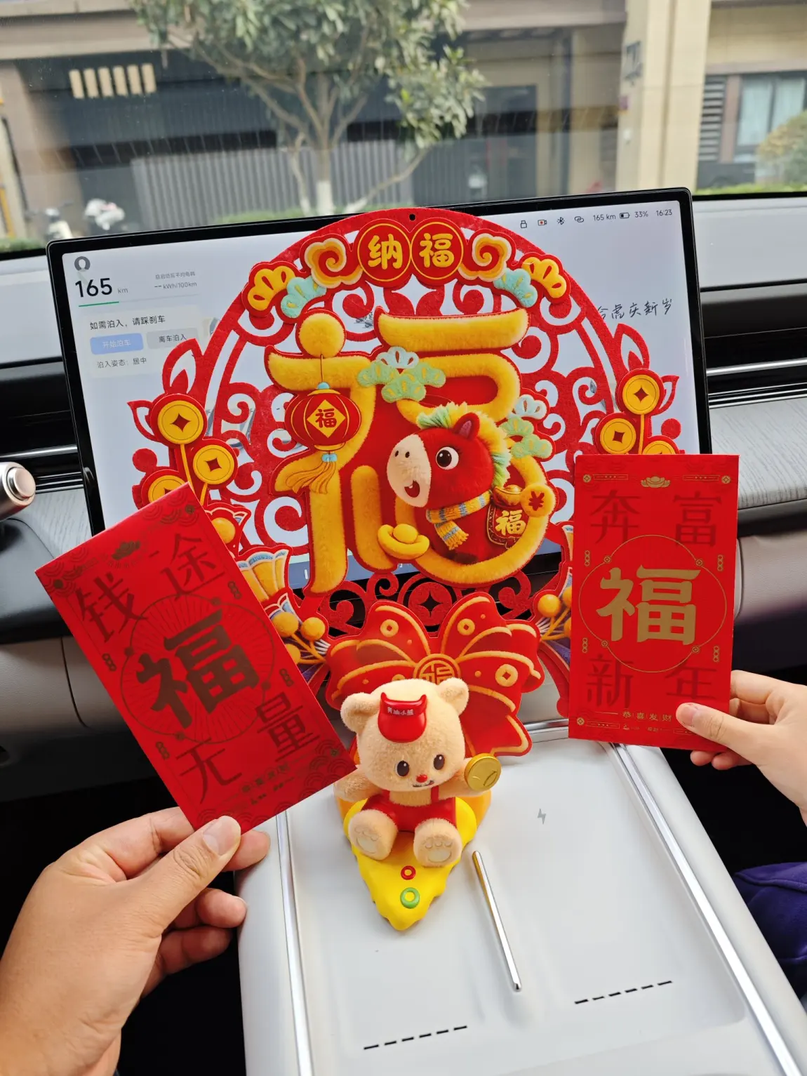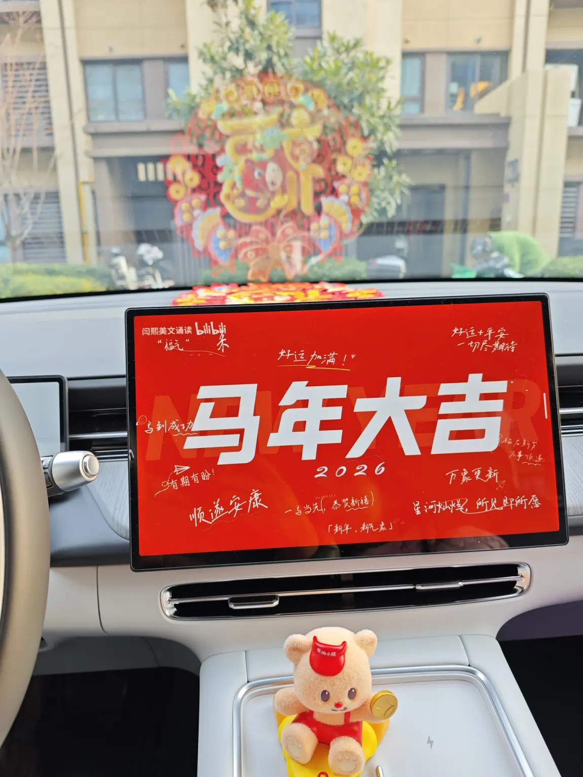 把马年专属的福字贴满小鹏G6的座舱,红灿灿的春联在手里展开,小熊玩偶也戴上了喜庆的红帽,这就是我和孩子一起布置的新年仪式感。 开着它在小区里兜一圈,孩子抱着福贴站在车头笑靥如花,阳光洒在银灰色的车身上,和满车的红装撞出暖洋洋的年味。从智能屏里的新春壁纸,到后备箱塞满的年货,小鹏G6不仅是出行的伙伴,更是我们家“预制”新年大片的最佳取景框。 马年已至,愿我们和小鹏G6一起,载着福气与团圆,奔赴每一段温暖的旅程。