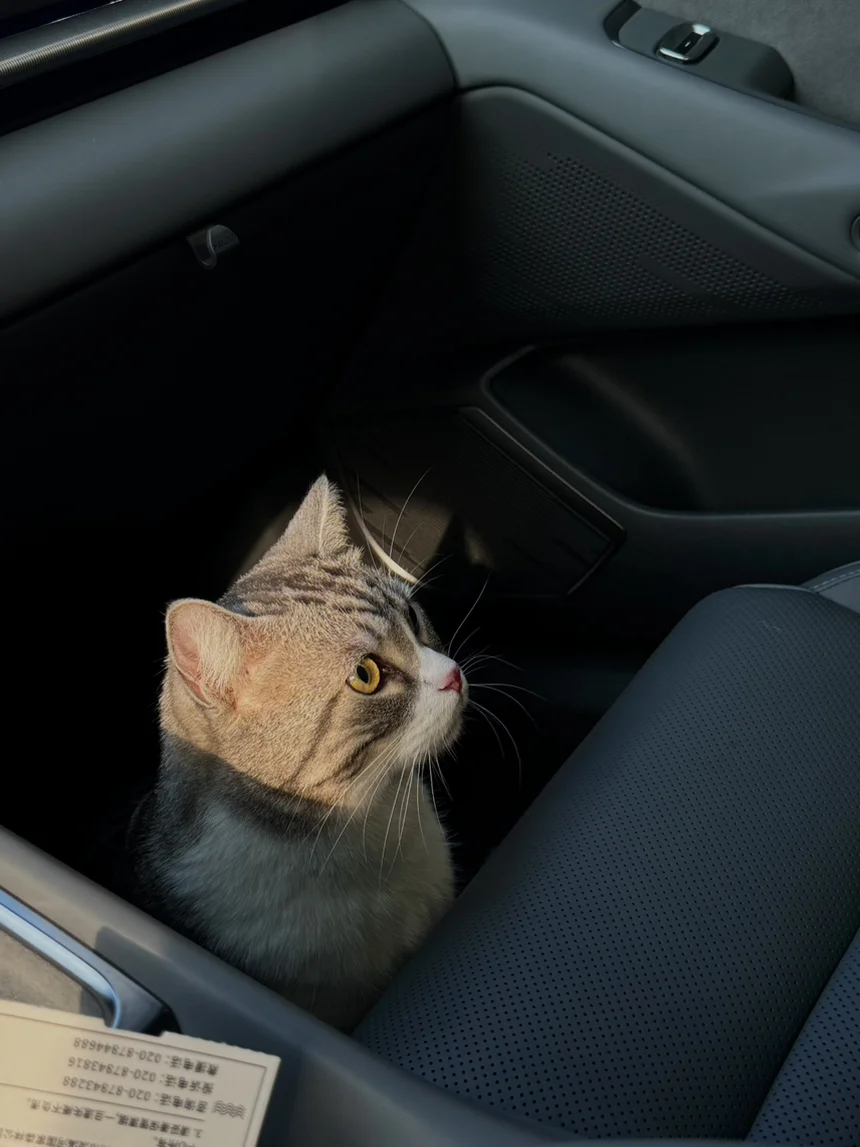 带我家猫出门,提前适应春节返程,稳稳当当,小密很快就适应新车车的味道了😘
