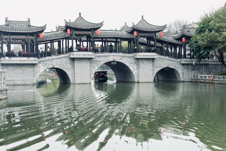 接着我们一路向南,去往合肥的三河古镇。青石板路蜿蜒曲折,白墙黛瓦间挂着红灯笼,乌篷船在河道里轻轻摇曳。我们可以在古镇里慢悠悠地逛,尝一尝三河米饺的鲜香,在古桥边驻足拍照,看时光在这座千年古镇里慢慢流淌。走累了,就找一家临河的茶馆坐下,泡一壶六安瓜片,听老板讲讲古镇的传说,在茶香里感受中式慢生活的惬意。