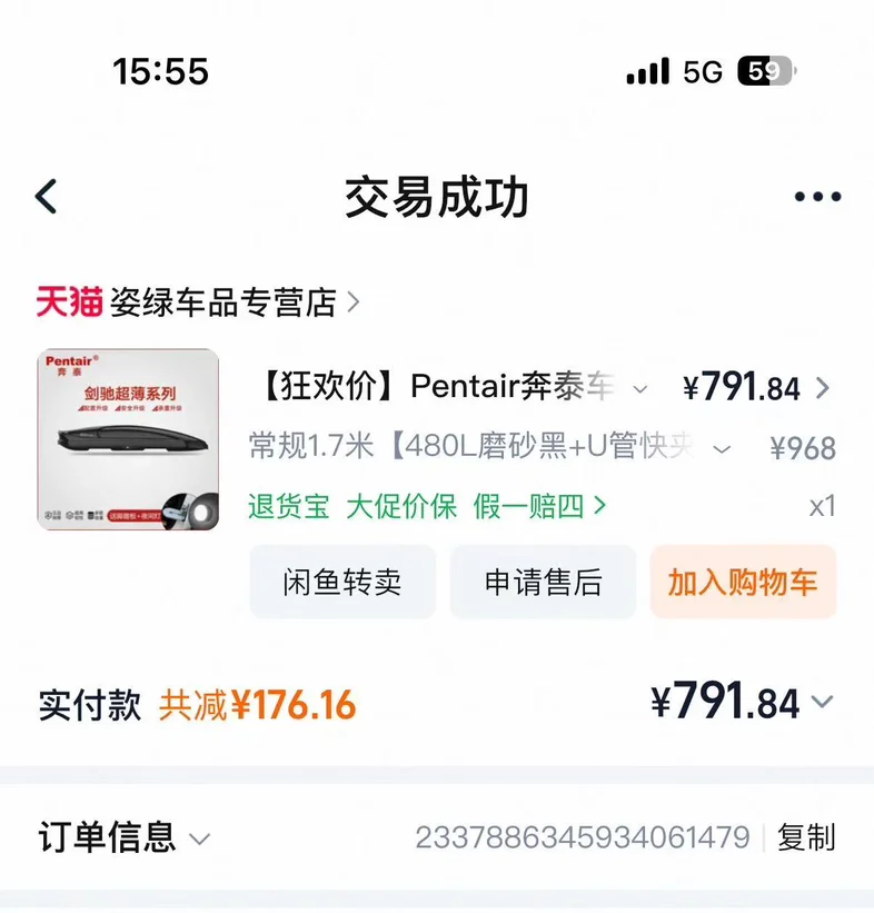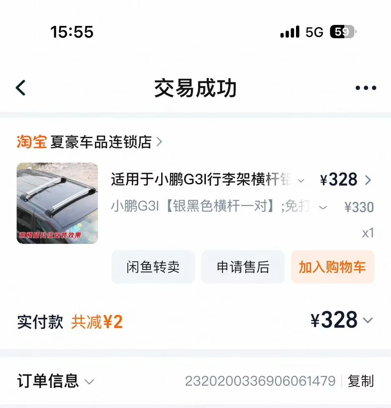 家里孩子多,把G3i换到X9了,有G3车主想安装车顶行李箱的请联系。容量430升,刚使用一年。安装后车高1.95米,绝大部分的地下停车场都可以进入。