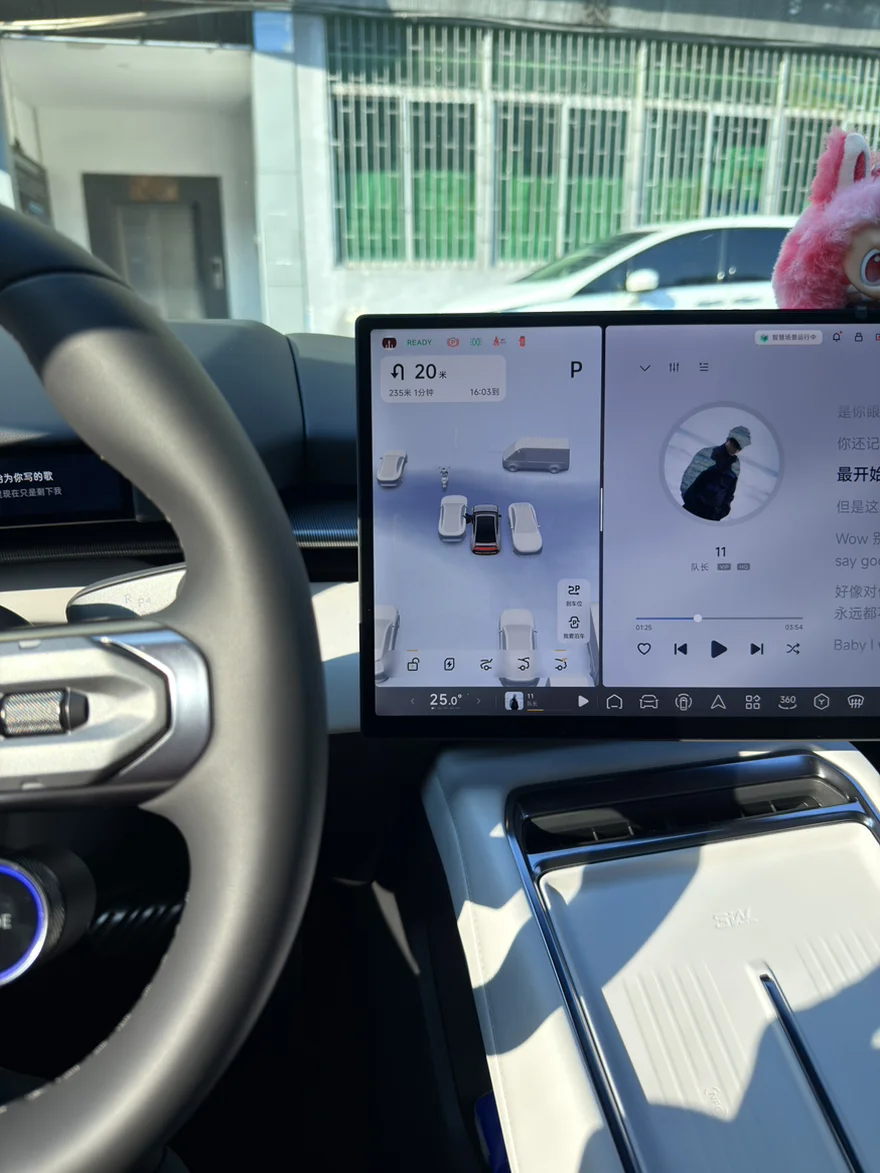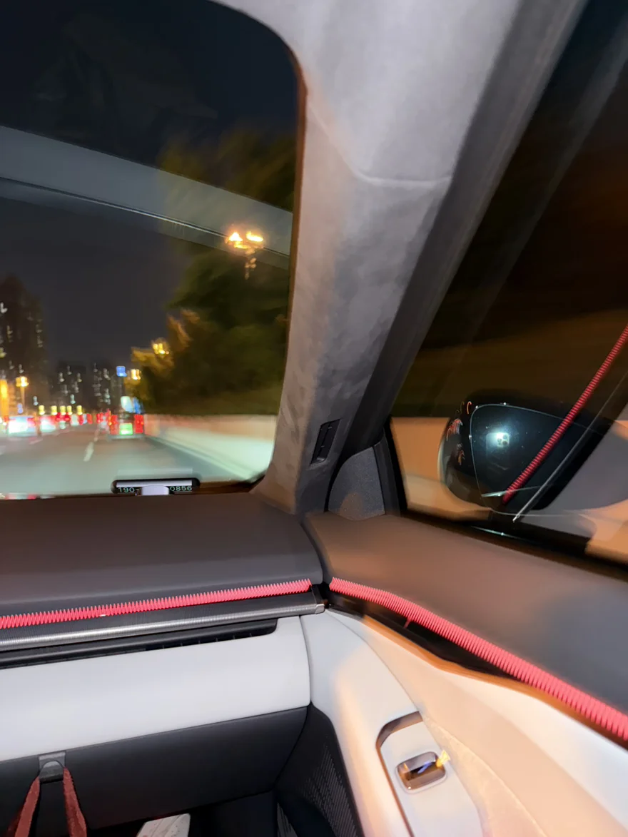 坐进车里的瞬间,被超大连屏和充满科技的内饰惊艳到了。座椅的包裹感特别舒服,方向盘握起来刚刚好,试了下加速推背感,直接把朋友逗得尖叫。