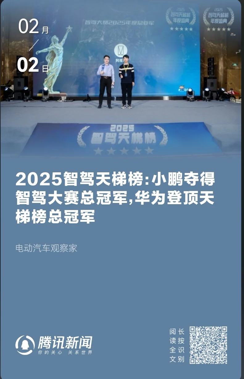2025智驾天梯榜:小鹏夺得智驾大赛总冠军。这么重要的消息小鹏居然没有报道吗?