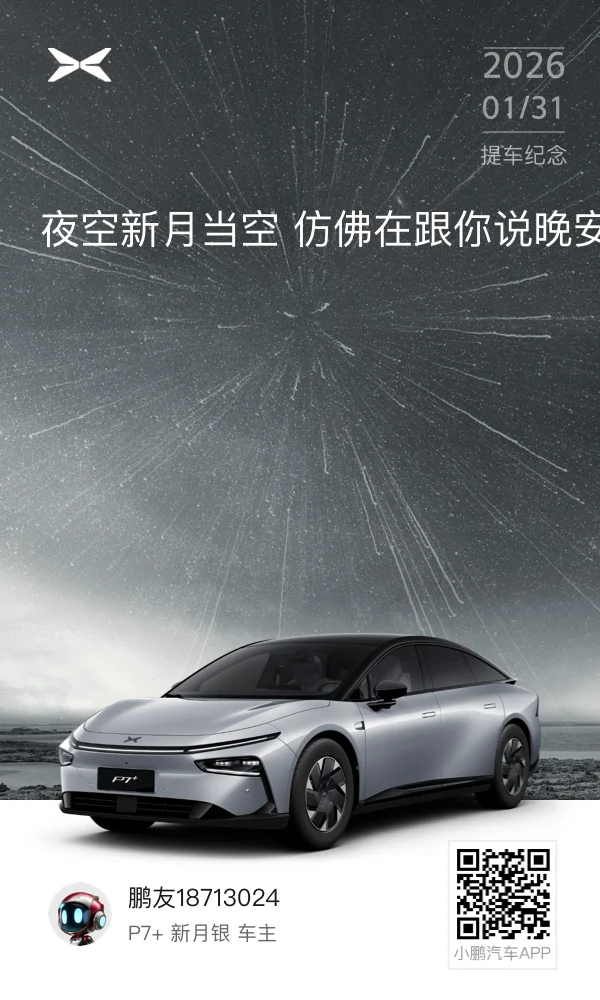 小鹏p7+终于提车成功!心心念念了一年的车终于拥有了,成为有车一族了,第一次试驾的时候就喜欢上了,外观太好看了,又试了智驾也很好。终于入手了!