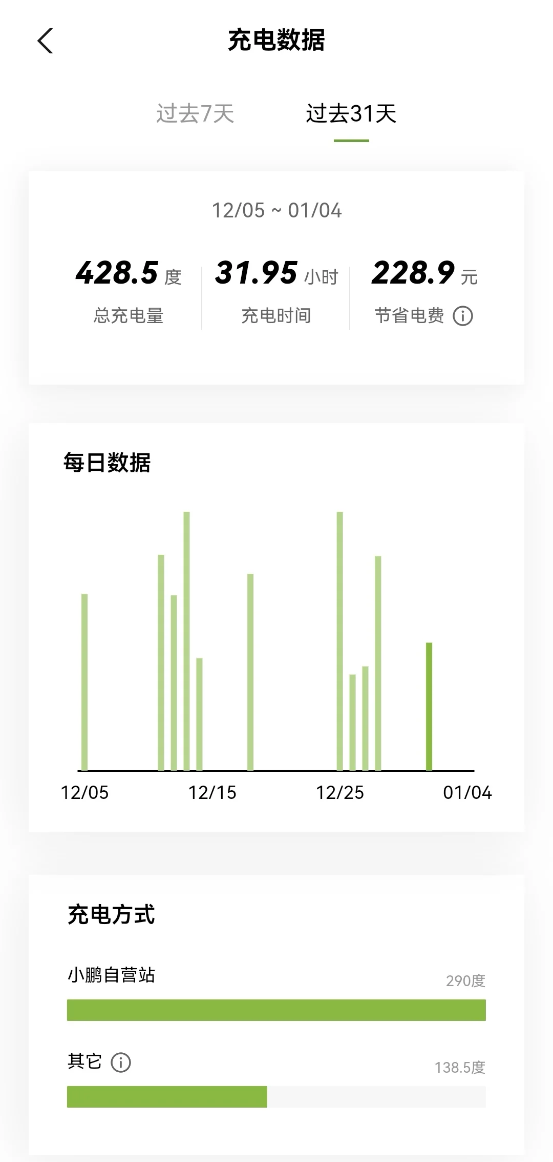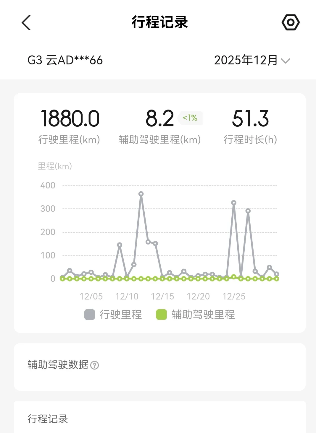 2025年12月,一共行驶1880公里,耗电400.5度,一度电约跑4.7公里。