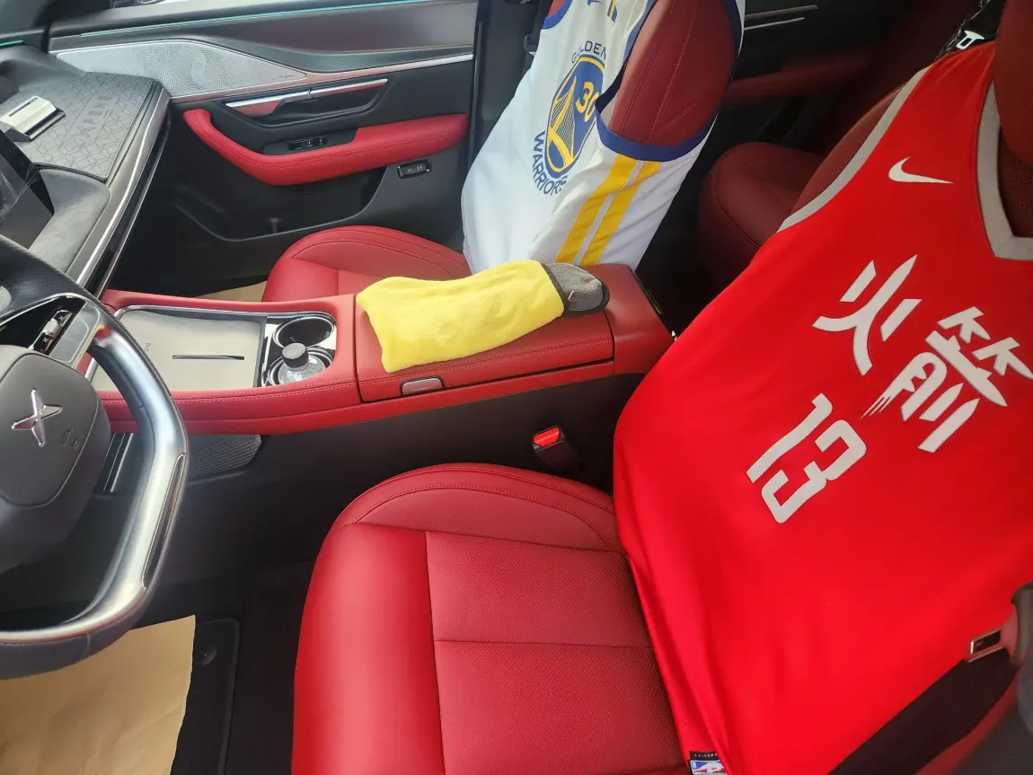✨ 红色真皮座椅配火箭13号球衣座套,是我对青春里热血篮球的浪漫致敬。副驾的勇士队球衣,随时等兄弟上车一起奔赴赛场🏀