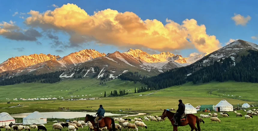 #全球鹏友接待计划# 如果时间充足的话,建议带外国朋友去新疆转一圈,感受祖国的大好河山。新疆的美,是一幅横跨天山南北、囊括四季风光的壮丽画卷。天山天池如一块碧绿的翡翠,镶嵌在博格达雪峰脚下,湖水清澈如镜,倒映着皑皑白雪与苍翠云杉,岸边野花似锦,清风拂过,带来雪山的清凉气息,宛如传说中的瑶池仙境。喀纳斯湖更是梦幻,湖水随光线变幻出蓝、绿、白等多种色彩,月亮湾的S形曲线蜿蜒穿过金黄的白桦林,卧龙湾的浅滩如巨龙静卧,神仙湾晨雾缭绕时,仿佛人间仙境。那拉提空中草原在天山腹地铺展,成群的牛羊如珍珠般散落在翠绿的草甸上,哈萨克族的白毡房点缀其间,碰上合适的时间,野花盛开,五彩斑斓,与远处的雪峰相映成趣。而帕米尔高原上,慕士塔格峰这位“冰山之父”巍峨耸立,卡拉库里湖如蓝宝石般倒映着它的雄姿,白沙湖则在沙漠中绽放出纯净的白与蓝,尽显高原的圣洁与辽阔。从乌尔禾魔鬼城的雅丹奇观到塔里木河畔的金色胡杨,从伊犁的紫色薰衣草花海到吐鲁番的赤焰火焰山,新疆的每一寸土地都散发着独特的魅力。