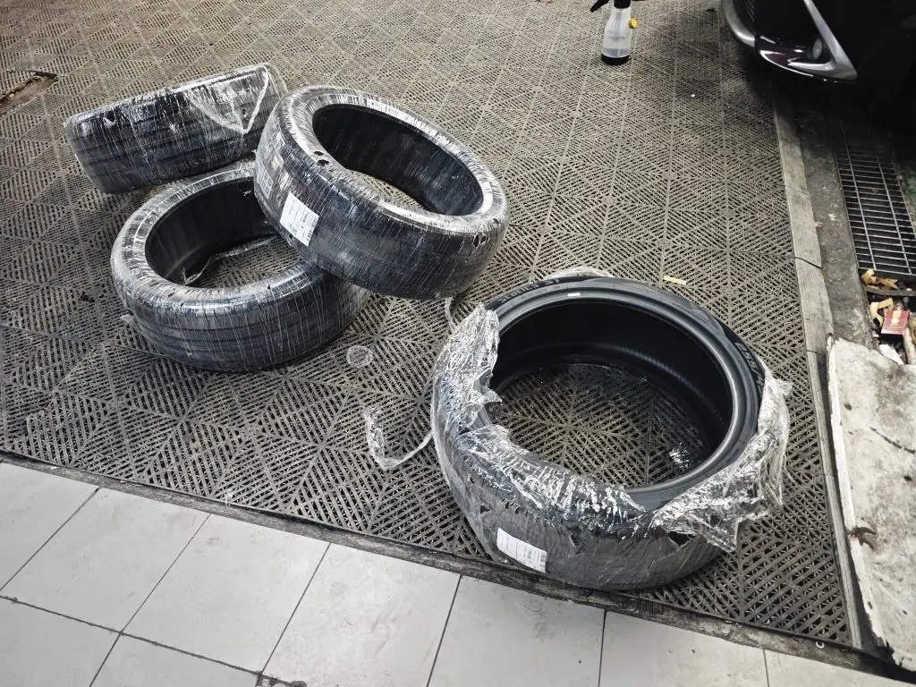 自从换了纯电G9,里程就多了个数量级,真是辛苦了G9,两年干了10几万公里,也该换胎了,其实全驱车轮胎磨损算很小的了,只是最近有点偏磨,后轮内侧有点到线了,趁年前换了胎好出去玩,从上一台奔驰用了国产胎以后,就回不去了,国产真的一点不输国外品牌,新鞋子有天鹅绒,特别黑,上脚很漂亮!这个品牌主打静音,我没有选带静音棉的,实际感受也不会比原来米其林的静音棉吵。感觉挺好,持续测试。