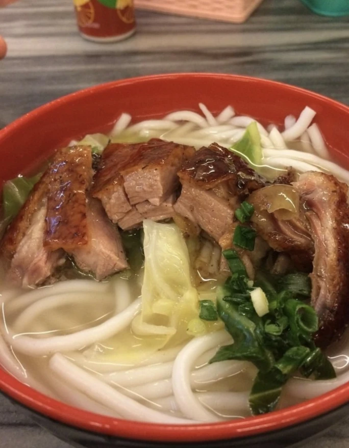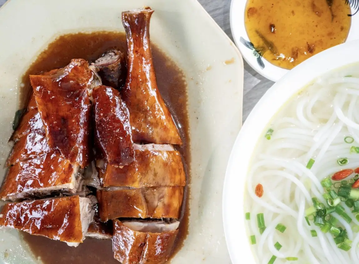 东莞烧鹅讲究皮脆肉嫩,荔枝木慢烤出来的鹅皮金黄油亮,咬下去“咔嚓”一声,香气瞬间在嘴里爆开,鹅肉鲜嫩多汁,一点都不腻。再配上爽滑弹牙的本地濑粉,吸饱了鲜美的骨汤,米香和肉香完美融合,再蘸上一点酸甜的梅子酱,一口下去,就是最正宗的岭南味道。