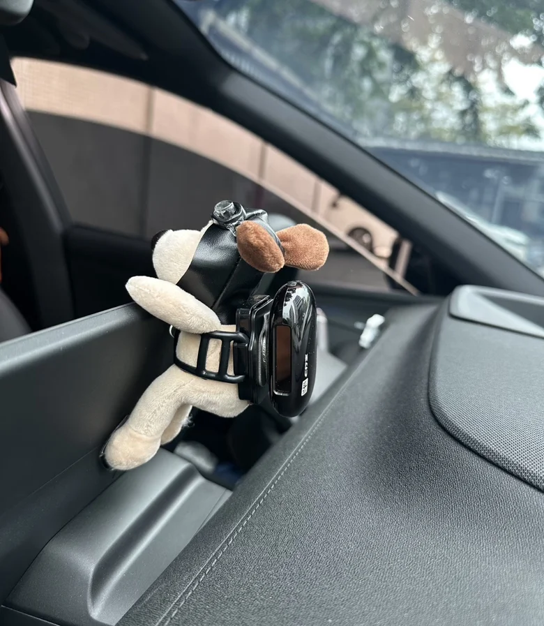 外面是皮质带小鹏LOGO钢印,内里是翻毛皮的,很有质感,找钥匙焦虑症瞬间治愈!