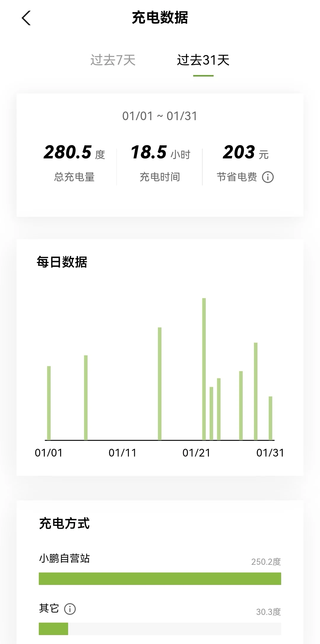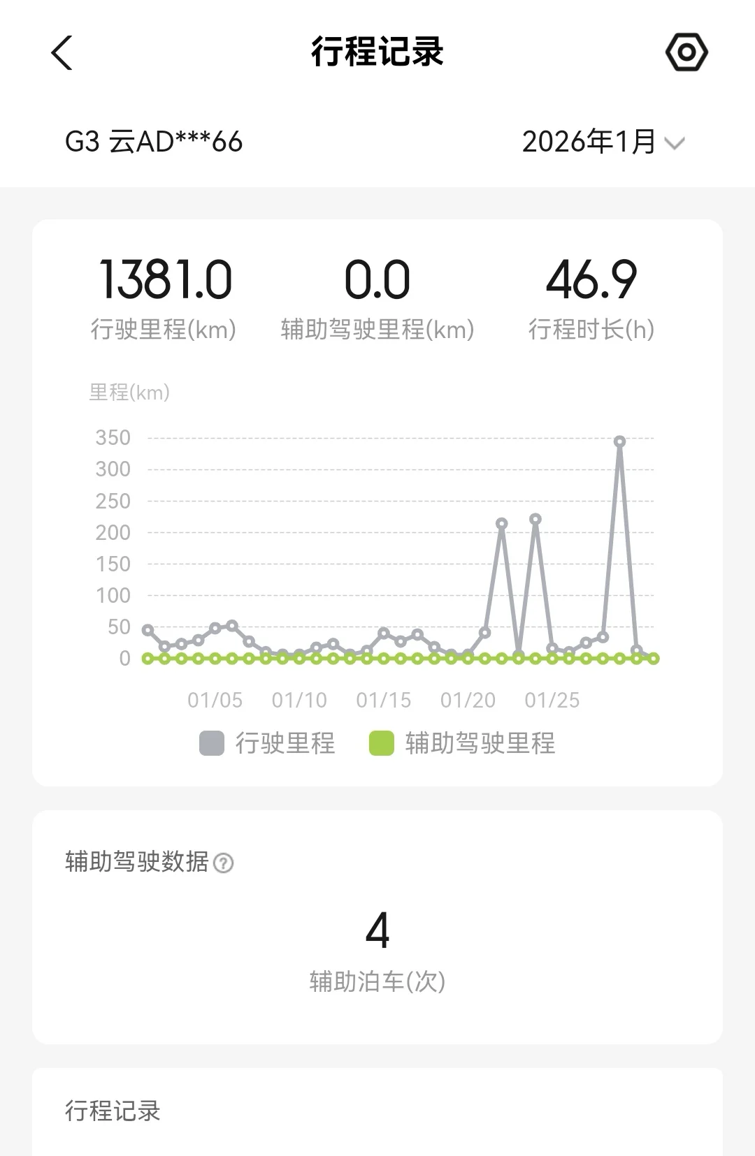 2026年1月,一共行驶1381公里,耗电280.5度,一度电约跑4.9公里。