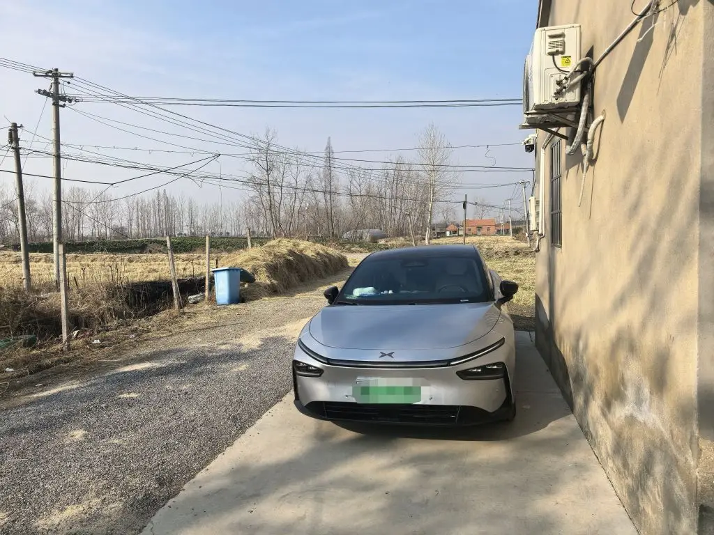 周末开着我的小鹏P7+回了趟乡下,银黑双拼的车身在乡间土路上格外吸睛。