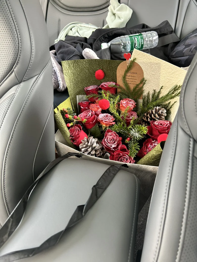 烂漫不过车里有朵鲜花为对方准备的惊喜,小小空间大大满足,后备箱超大空间可以塞满花朵,期待下一次的准备,小鹏mona03,年轻人的专属座驾,智能驾驶辅助也很赞