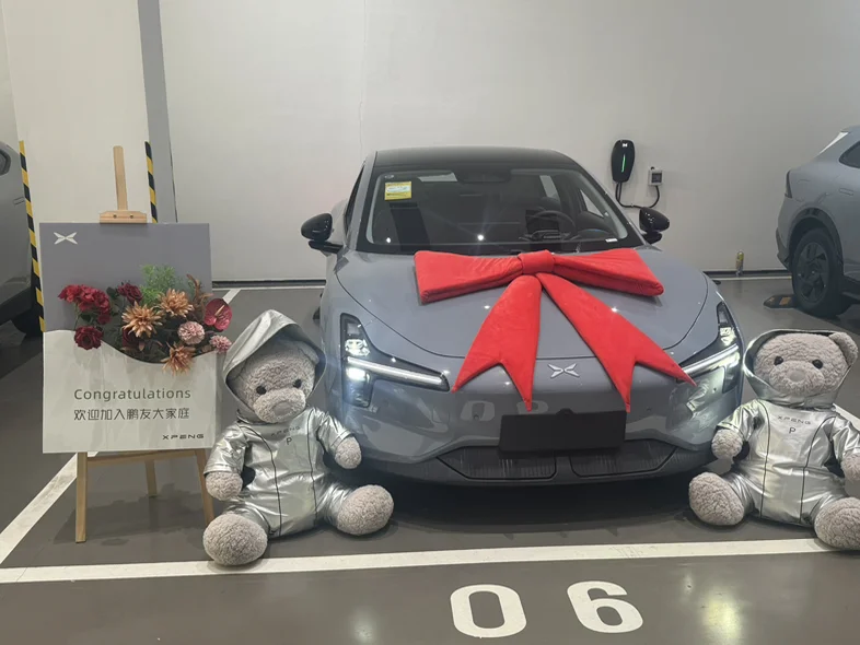 早上到交付中心,我的M03已经被洗得干干净净,车头还摆了鲜花和专属提车牌。销售小哥很耐心地给我讲解车机功能,还帮我拍了好多张人车合影。