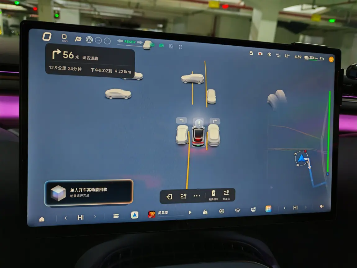高速上开启全程智驾,跟车、变道、过匝道一气呵成,遇到加塞还能提前预判减速,比我自己开还稳!最绝的是到了老家小区老旧地库,窄通道两侧只留30cm间距,车子精准控制车速5km/h以内,最后泊入车位时车身与标线平行度误差不超2cm,全程1分20秒搞定,比我手动停车省了快3分钟!从公司车位到老家车位,真正实现「全程托管」,我只需要偶尔轻扶方向盘,旅途疲惫感直接消失~