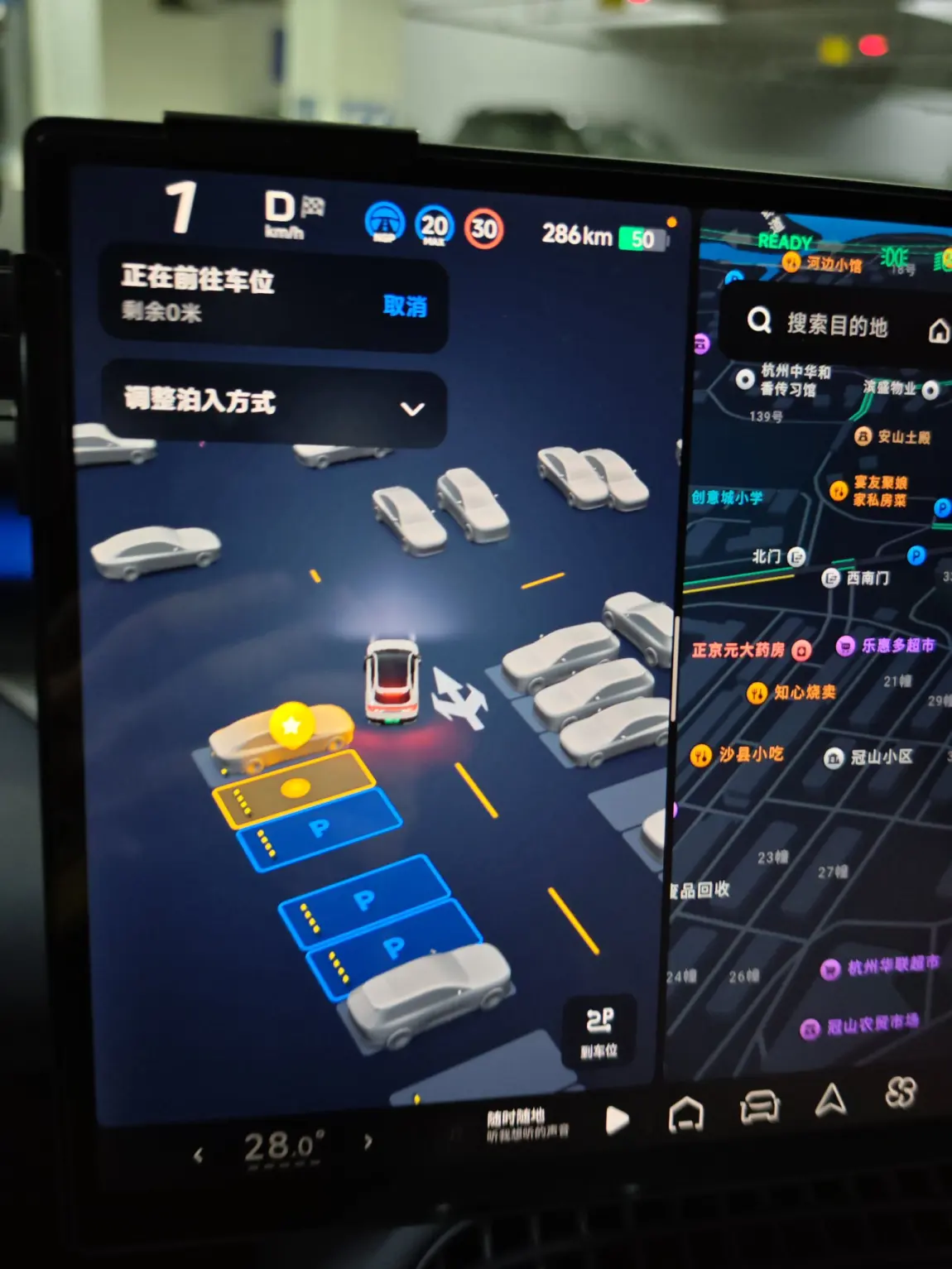 最让新手狂喜的必须是「AI泊车黑科技」!车子自己精准测算距离,2次微调就稳稳停进去,邻车开门时还会立即暂停,反应速度超0.5秒!路边没有划线车位,开启「自定义泊车」,在屏幕上画个框就能生成车位,车子慢慢调整角度,轻松泊入杂乱的空位里,围观的亲戚都看呆了~