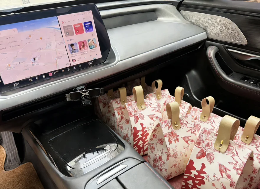 婚礼当天,我的小鹏P7第一次成为婚车。早上接上她时,副驾放着她的手捧花,车机里循环着我们自驾游时听过的歌。从家到酒店,路程不长,我们却像第一次自驾去海边那样,聊个不停。