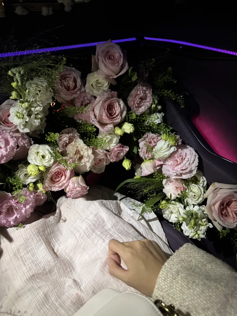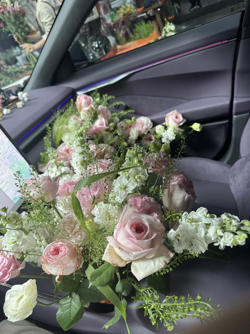 #藏在车生活里的浪漫# 提前一周就开始筹备这场惊喜。趁着她加班的间隙,悄悄跑去花店挑选花材——是她最爱的玫瑰,搭配几枝浅粉洋桔梗增添温柔,暗合她喜欢的简约质感😌 ps:其实自己也是在一边加班一边布置🤗 🚗出发去接她的路上,还特意绕开拥堵路段,怕颠簸弄乱花枝😝车厢里渐渐漫开淡淡的花香,和车载香薰交织在一起,成了专属于小P的浪漫气息。 🌸浪漫从不是需要盛大的仪式,而是把满心的偏爱,藏进这样平常的日子里。
