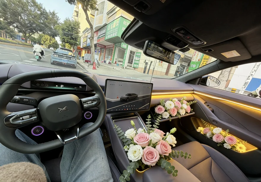 小鹏新P7的内饰真的越看越爱,摆上一小束花,氛围灯调个柔和的色调,通勤路上的疲惫都被抚平了打工人专属浪漫,花束配氛围灯,把平凡的通勤路变得有滋有味