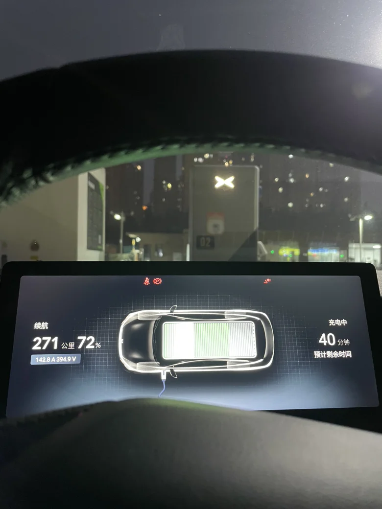 深夜加班返程电量见底,感谢小鹏超充站,依旧灯火通明,即插即充不用等,快充配上安静的环境,慢慢抚平一身的疲惫。