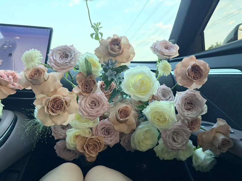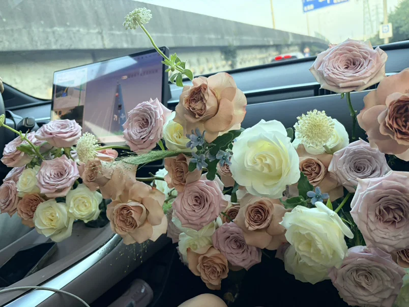 #藏在车生活里的浪漫# 第一次买车,第一次准备副驾驶鲜花,还没买车前就看到别人男朋友或老公亲自布置副驾驶鲜花,偶然看到女朋友的短视频里的喜欢,我记住了,她很喜欢浪漫,所以在她生日之际,我亲手为她布置了副驾驶鲜花,从买花到醒花的过程是多么的漫长,生怕开不出花来,好在最后还是开出来了,插花就用了三个小时,剪刺,修短修长,搞层次,她看到的那一刻就是我想要的模样😎