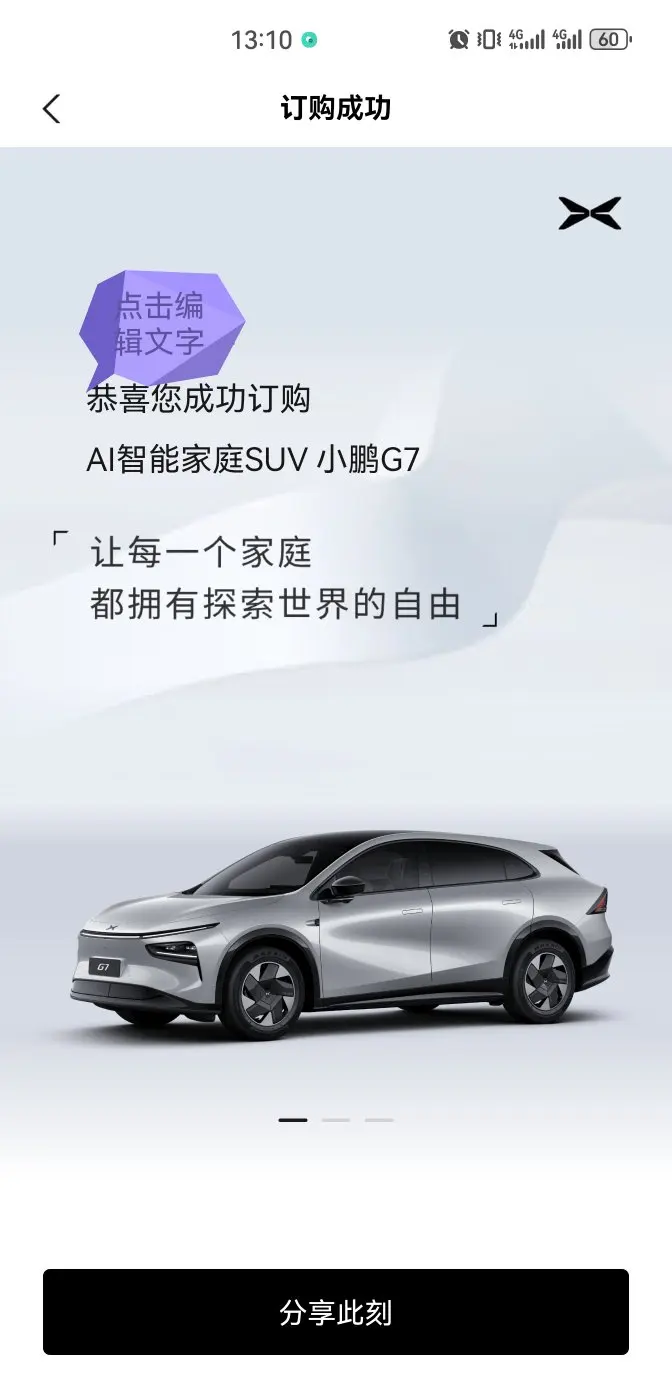 #我的提车作业# 选了G6. G7. G9终于决定下单。年前提车。坐进G7,第一感觉就是“大”。后排空间宽敞,家用很舒服。内饰是简约科技风,一块大屏控制几乎所有功能。语音助手“小P”特别聪明,可以连续对话,能听懂很多指令,开车时动嘴比动手方便。开起来,它给人的感觉是轻松好上手。动力平顺有力,方向盘轻,底盘过滤颠簸很柔和,整体调校偏向舒适。隔音做得不错,车里比较安静。一句话总结: G7是一款主打“舒适大空间”和“智能好用”的家用SUV,很适合追求科技感和实用性的家庭用户。