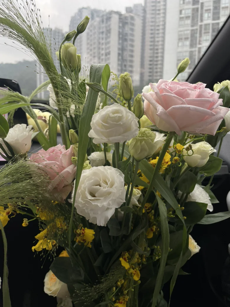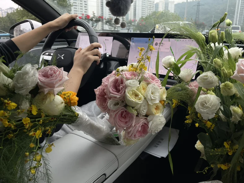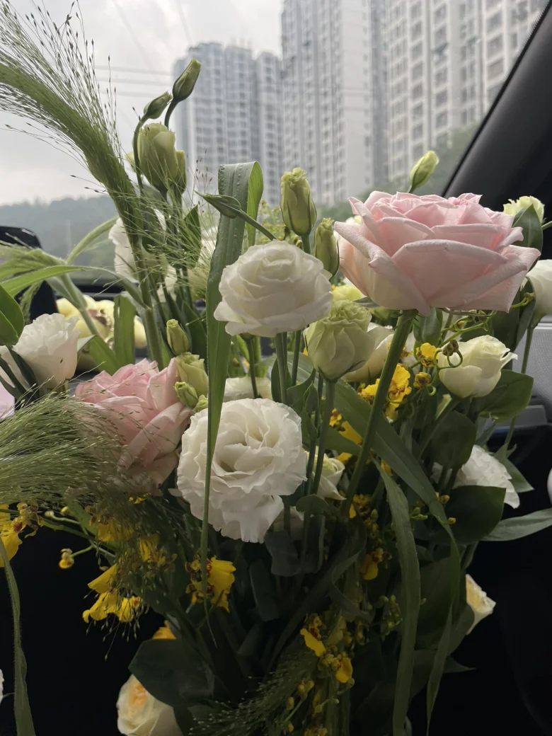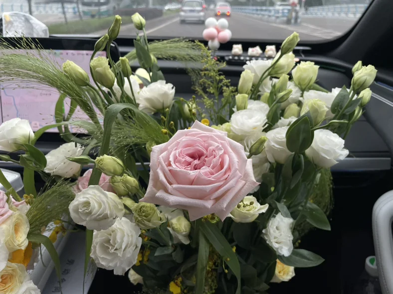 开着小P,载满亲手准备的鲜花去拍婚纱照。满车粉白的花朵裹着清甜的香气,连风里都飘着欢喜。是小P带着我们亲手打包的幸福,奔赴一场关于未来的仪式!!